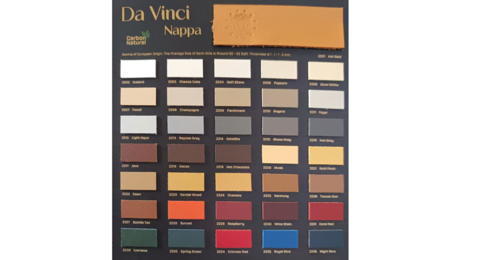 Da Vinci Napa Eco-conscious yet premium, Eco Napa offers the elegance of traditional Napa leather with environmentally friendly manufacturing practices.